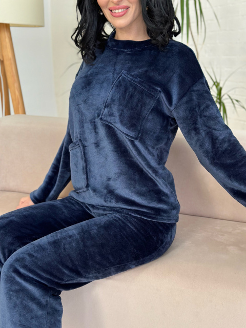 UA MarketВінницяGhjhgТовари та послугиДомашні костюми та халати жіночі оптомМахровий костюм з декоративними кишенями «Luci» оптом | Норма | Розпродаж моделі Темно-синій, 42-44