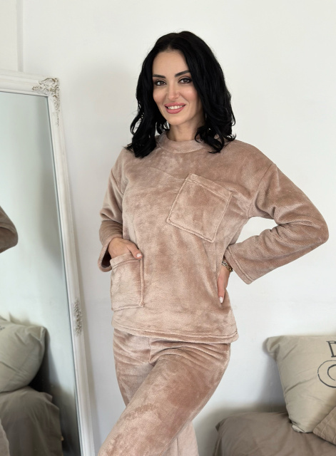 UA MarketВінницяGhjhgТовари та послугиЖіночий одяг батал (розмір 50+) оптомДомашні костюми та халати жіночі батал оптомМахровий костюм з декоративними кишенями «Luci» оптом | Батал | Розпродаж моделі Бежевий, 50-52