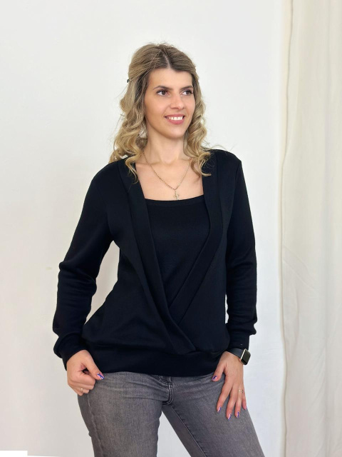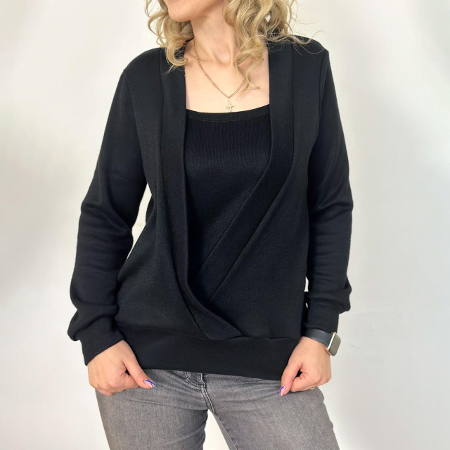 Декоративні планки не тільки роблять образ цікавішим, а й підкреслюють жіночні вигини фігури. Фасон із запахом дозволяє модницям не боятися, що їхня фігура стане безформною через прямий крой кофти. Перехрещені планки чудово підкреслюють талію та коригують силует.