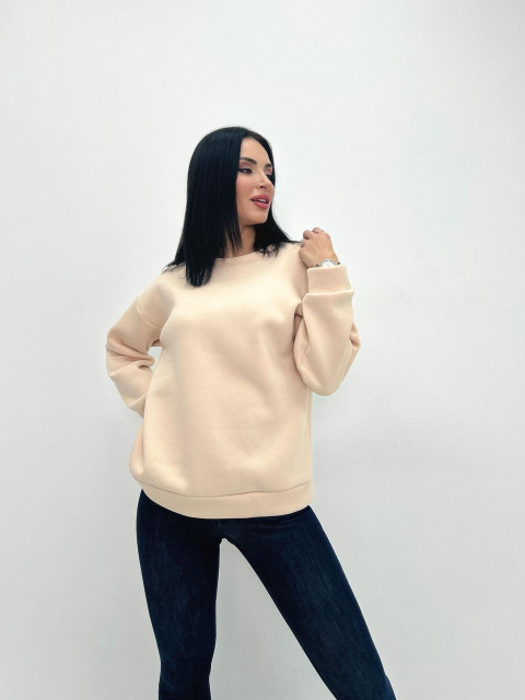 Жіночий теплий батник «Wear» Турція оптом |Батал | Розпродаж моделі Бежевий, 50-52