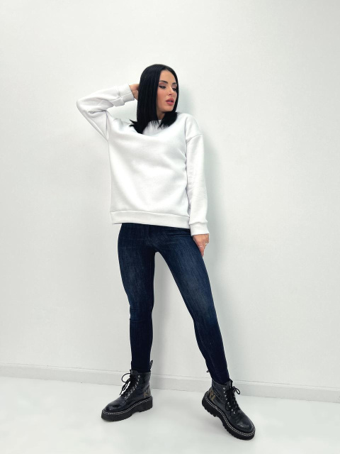Жіночий теплий батник «Wear» Турція оптом |Батал | Розпродаж моделі Білий, 50-52