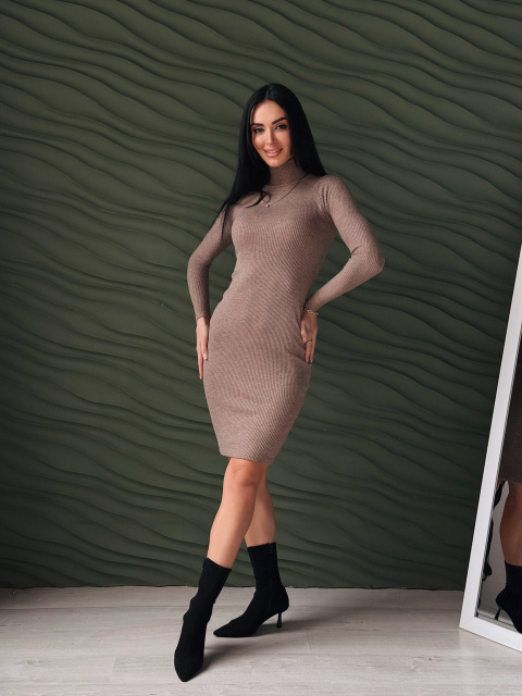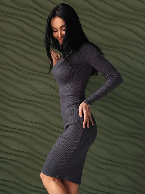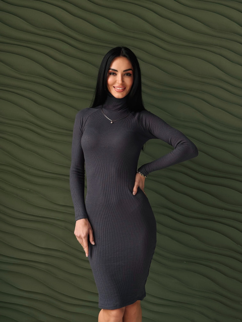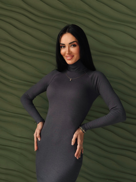 Ця елегантна сукня міді з ангори рубчик – правильний вибір для тих, хто цінує поєднання стилю та комфорту. Суворий силует з довгими рукавами та коміром гольф ідеально підходить як для базового, так і для святкового гардеробу.