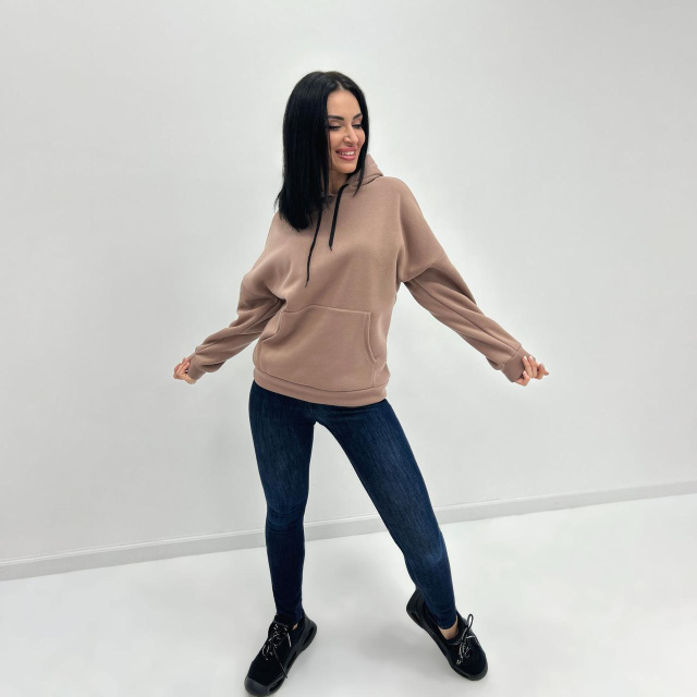 UA MarketВінницяGhjhgТовари та послугиЖіночий одяг батал (розмір 50+) оптомКофти жіночі батал оптомОднотонний батник з капюшоном «Kerry» оптом | Батал Капучіно, 50-52
