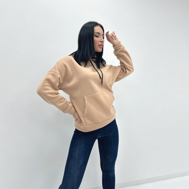 Жіночий батник з капюшоном "Kerry" Роздріб (не дропшипінг) – 475 грн Також в наявності . Представляємо світшот "Kerry" – багатофункціональний елемент базового гардеробу, створений для того, щоб задовольнити запити найвибагливіших клієнтів. Модель представлена у 9 кольорах, дозволяючи кожному знайти ідеальний відтінок для свого стилю та настрою. Світшот "Kerry" виконаний у просторому фасоні, який забезпечує свободу рухів та легко комбінується як зі спортивними лосинами, так і з джинсами. Особливостями дизайну є круглий виріз, довгі рукави зі спущеною лінією плеча та капюшон на шнурку. Спущена лінія плечей додає сучасного відчуття розслабленості. Кожна деталь продумана з урахуванням практичності та візуальної привабливості: манжети забезпечують акуратну посадку, а кишеня "кенгуру" поєднує зручність і стиль. Цей світшот – чудовий додаток до асортименту для тих, хто цінує універсальність і хоче запропонувати клієнтам щось більше, ніж просто одяг – настрій і почуття впевненості в будь-якій ситуації. Щоб батник довше зберігав свій зовнішній вигляд, рекомендується прати його в делікатному режимі за температури 30 градусів. Характеристики Стиль: Спортивний Сезон:Демісезон/зима Довжина від плеча:67 см Довжина рукава від горловини:70 см Матеріал:Тринитка на флісі (Китай) Наявність на складі Колір 50-52 Бежевий ✓ Чорний ✓ Електрик ✓ Білий ✓ Сірий (меланж) ✓ Темно-зелений ✓ Капучино ✓ Графіт ✓ Шоколадний ✓ ✓ — в наявності (кількість не обмежена). ✗ — немає в наявності (знято з виробництва). АКЦІЇ ТА ЗНИЖКИ ПОДАРУНОК ПРИ КУПІВЛІ ВІД 3-Х ОДИНИЦЬ При купівлі від 3 од. будь-якого товару в одній посилці, не включаючи позицій з розпродажу та розділу "Все по 95" ДОДАТКОВА ЗНИЖКА При покупці від 25 од. будь-якого товару в одній посилці (акції не підсумовуються) Наші переваги Весь товар в наявності Відправка за 24 години 100% як на фото Найвигідніші ціни Обмін та повернення Гарантія якості