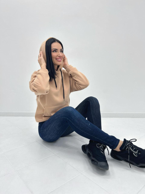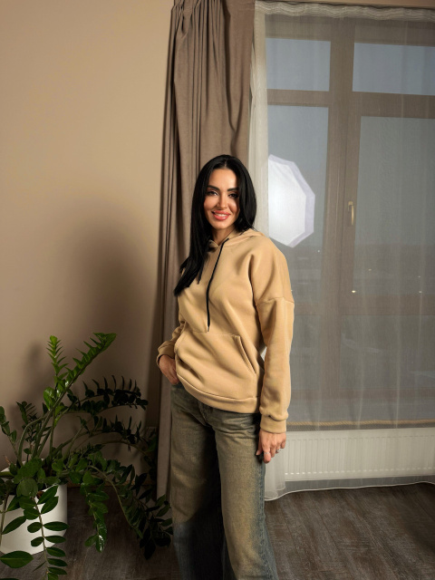 UA MarketВінницяGhjhgТовари та послугиЖіночий одяг батал (розмір 50+) оптомКофти жіночі батал оптомОднотонний батник з капюшоном «Kerry» оптом | Батал Бежевий, 50-52