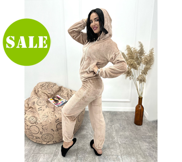 Комплект "Palmira" складається з вільної кофти із застібкою-блискавкою та елегантних штанів. Він м'яко обіймає постать, забезпечуючи свободу рухів. Штани на зручній гумці гарантують бездоганну посадку, а їх прямий крій візуально стрункішає силует.