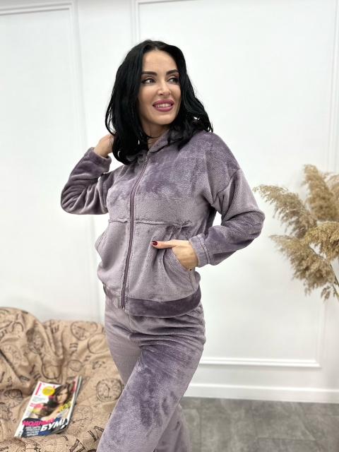 Костюм "Palmira" виконаний з якісної шліфованої махри, приємної на дотик і неймовірно м'якої. Цю модель можна носити як домашній костюм, і як піжаму. Оскільки вона чудово захищає від холоду, можна не турбуватися про прохолоду після душу або перебої з опаленням у морозні дні. Тепла і м'яка тканина створює відчуття розслабленості, затишку і комфорту протягом усього дня.