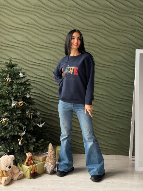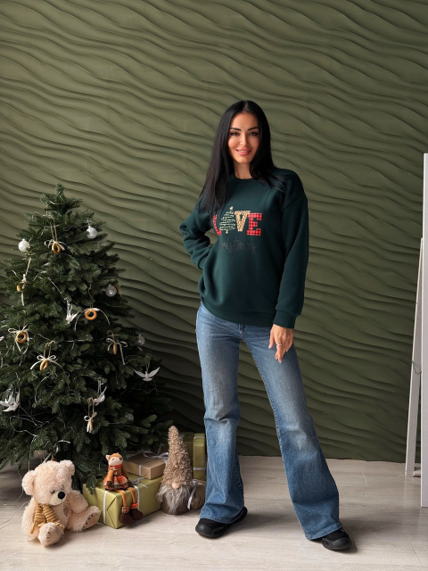 Збагатіть вашу святкову колекцію нашим світшотом "Festival". Цей унікальний світшот, виконаний у яскравих та базових тонах, прикрашений креативним принтом, де кожна буква слова "Love" складається з різдвяних символів, таких як ялинки та візерунки у вигляді сніжинок. Це не лише модний елемент гардеробу, а й втілення урочистого настрою.