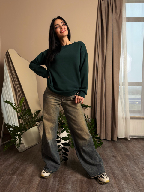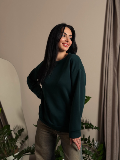 Поєднання вільного крою та однотонної палітри робить цей світшот універсальним, адже його можна поєднувати як зі спортивними легінсами та кросівками, так і з джинсами та черевиками. Виріб м'яко підкреслить жіночну фігуру, не обмежуючи рухів і акцентуючи недоліки. Лаконічний дизайн робить його простим у комбінуванні з різними стилями та аксесуарами, дозволяючи створювати унікальні образи.