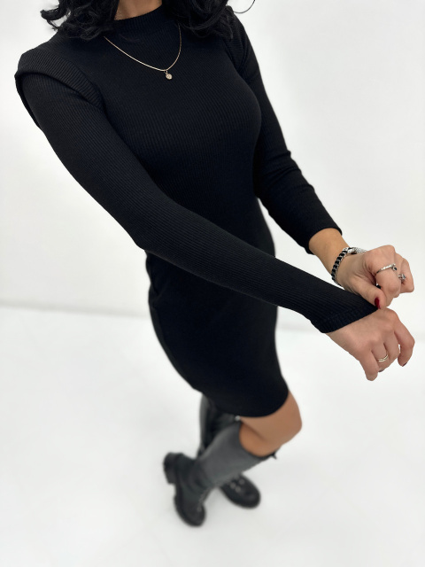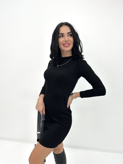 Тепла сукня рубчик «Hillary» оптом | Батал| Розпродаж моделі Чорний, 50-52