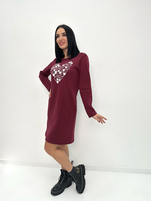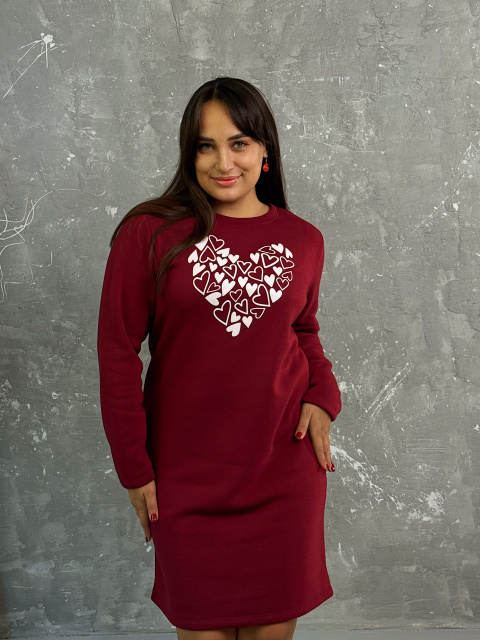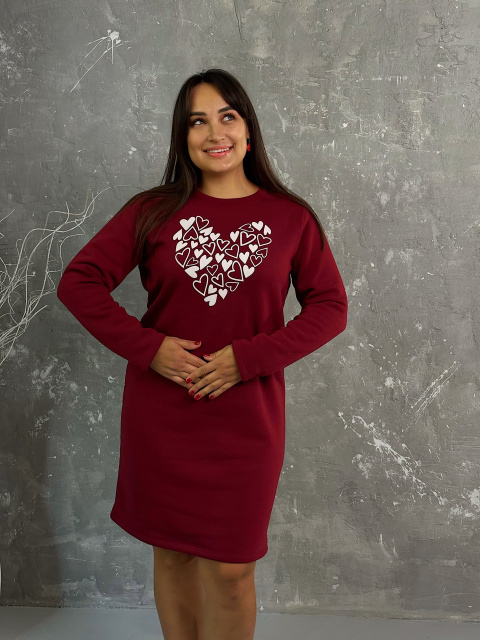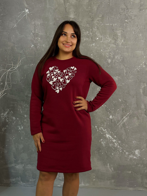 Тепла сукня з принтом «Romance» оптом | Батал Марсала, 50-52