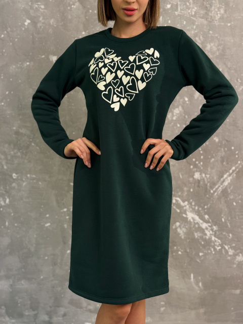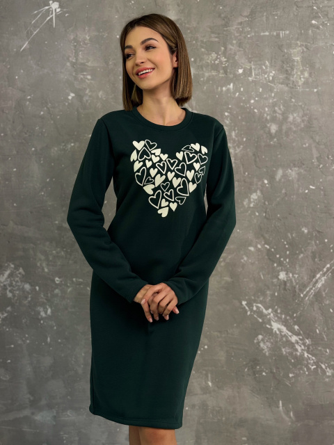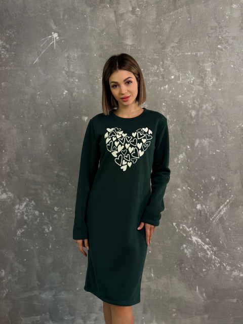 Тепла сукня з принтом «Romance» оптом | Батал Темно-зелений, 50-52