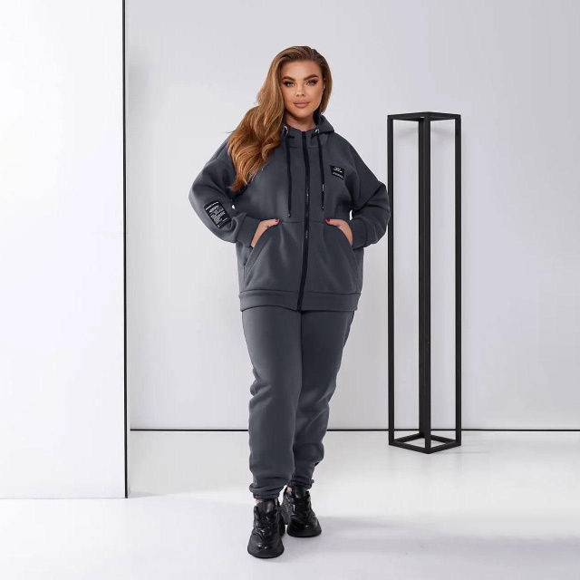 Утеплений костюм-двійка великого розміру Роздріб (не дропшипінг) – 845 грн Також в наявності . Костюм "Walker" від Fashion Girl – це теплий та зручний вибір для зими та прохолодної погоди. Ця модель стане бажаним доповненням до зимового та демісезонного асортименту вашого магазину. Кожен елемент костюма "Walker" – це поєднання функціональності та модного дизайну. Кофта на блискавці та спортивні штани виконані з трикотажу (тринитки) на флісі, який забезпечує тепло навіть у найморозніші дні. Модель відрізняється продуманими деталями: зручними кишенями та м'якими еластичними манжетами для додаткового затишку та практичності. Додаткова деталь для більшого комфорту – високий комір та капюшон, які дозволяють легко підлаштовуватися під капризи погоди. Фасон костюма "Walker" універсальний і підходить для будь-якої фігури, підкреслюючи переваги та гармонійно приховуючи недоліки. Це ідеальний вибір для тих, хто веде активний спосіб життя та цінує свободу рухів навіть у зимовий час. Щоб костюм зберігав гарний зовнішній вигляд, його рекомендується прати при низькій температурі (до 30 градусів), навпаки і в делікатному режимі. "Walker" від Fashion Girl – це не просто одяг, це обіцянка тепла та комфорту ваших клієнтів у холодні місяці. Теплі спортивні костюми оптом та по дропшипінгу Якщо вам потрібно купити жіночі теплі спортивні костюми оптом та за гарною ціною, замовте у виробника безпосередньо! Fashion Girl пропонує вигідні умови для оптовиків та дропшиперів. У нас ви знайдете доступні ціни та гарна якість. В асортименті завжди багато модних новинок. Ми швидко вирішуємо питання обміну та повернення та надсилаємо замовлення протягом доби після підтвердження замовлення. Характеристики Стиль:Спортивний Сезон:Осінь/зима Довжина кофти від плеча: 69-70 см Довжина рукава від горловини:74-75 см Довжина крокового шва:72 см Довжина бічного шва: 101-102 см Матеріал:Тринитка на флісі (Китай) Наявність на складі Колір 50-52 54-56 Темно-зелений ✓ ✓ Темно-синій ✓ ✓ Графіт ✓ ✓ Марсала ✓ ✓ Шоколадний ✓ ✓ ✓ — в наявності (кількість не обмежена). ✗ — немає в наявності (знято з виробництва). АКЦІЇ ТА ЗНИЖКИ ПОДАРУНОК ПРИ КУПІВЛІ ВІД 3-Х ОДИНИЦЬ При купівлі від 3 од. будь-якого товару в одній посилці, не включаючи позицій з розпродажу та розділу "Все по 95" ДОДАТКОВА ЗНИЖКА При покупці від 25 од. будь-якого товару в одній посилці (акції не підсумовуються) Наші переваги Весь товар в наявності Відправка за 24 години 100% як на фото Найвигідніші ціни Обмін та повернення Гарантія якості