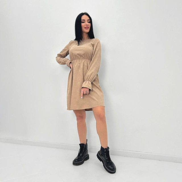 Вельветова сукня із завищеною талією «Wesley» оптом | Батал | Розпродаж моделі Бежевий, 50-52