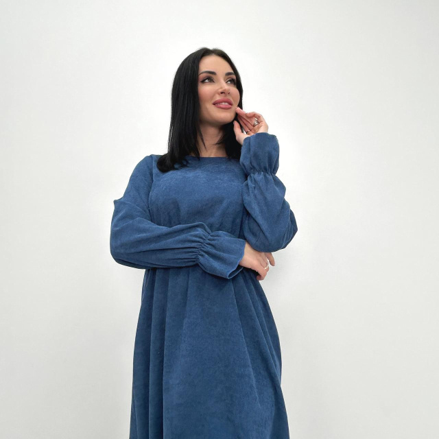 Вельветова сукня із завищеною талією «Wesley» оптом | Батал | Розпродаж моделі Джинс, 50-52
