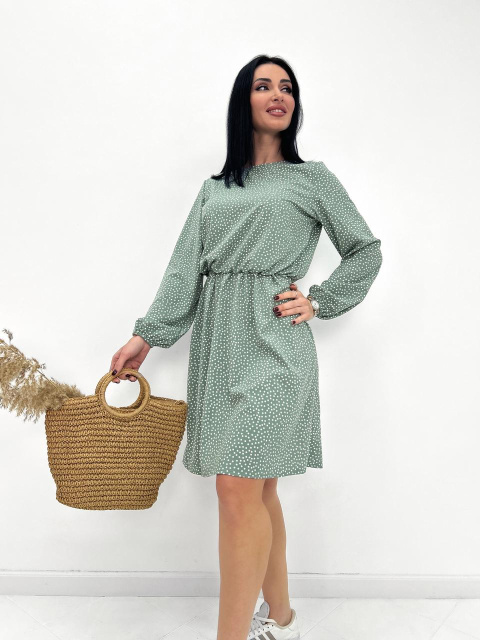 Жіноча сукня в горошок з довгим рукавом «Virginia» оптом | Норма і батал | Розпродаж моделі Фісташковий, 42-44