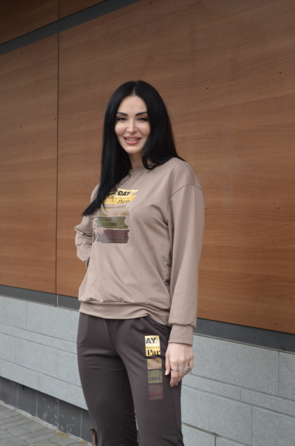 Двокольоровий костюм з малюнком Роздріб (не дропшипінг) – 765 грн Також в наявності . Представляємо вам костюм "Nopeday" від Fashion Girl – ідеальне поєднання стилю і комфорту. Модель складається з світшота та штанів різних кольорів, що дозволяє створити цікавий повсякденний образ. Завдяки різниці відтінків елементи комплекту легко носити як разом, так і окремо: наприклад, з футболкою та лосинами. Верх костюма – вільний світшот зі спущеною лінією плеча та класичною круглою горловиною. Лаконічний дизайн ідеально поєднується з великою контрастною наклейкою, прикрашеною написами та малюнками. Штани з манжетами внизу забезпечують неперевершений комфорт та надають образу сучасного шарму. Костюм "Nopeday" – це ідеальний вибір як для міського стилю, так і активного відпочинку на свіжому повітрі. Він не тільки виглядає стильно та сучасно, але й забезпечує надійне утеплення у прохолодні дні. Догляд за цим костюмом простий і зручний – його легко прати, і він зберігає свій первісний вигляд довгий час. Теплі спортивні костюми оптом та по дропшипінгу Якщо вам потрібно купити жіночі спортивні костюми оптом та за гарною ціною, замовте у виробника безпосередньо! Fashion Girl пропонує вигідні умови для оптовиків та дропшиперів. У нас ви знайдете доступні ціни та гарна якість. В асортименті завжди багато модних новинок. Ми швидко вирішуємо питання обміну та повернення та надсилаємо замовлення протягом доби після підтвердження замовлення. Характеристики Стиль:Спортивний Сезон:Весна/осінь Довжина кофти від плеча: 62-63 см Довжина рукава від горловини:69-70 см Довжина крокового шва:74 см Довжина бічного шва: 97-98 см Матеріал:Двонитка Наявність на складі Колір 50-52 54-56 Шоколад+чорний ✓ ✓ Сірий меланж+чорний ✓ ✓ Капучино+шоколадний ✓ ✓ Білий+графіт ✓ ✓ ✓ — в наявності (кількість не обмежена). ✗ — немає в наявності (знято з виробництва). АКЦІЇ ТА ЗНИЖКИ ПОДАРУНОК ПРИ КУПІВЛІ ВІД 3-Х ОДИНИЦЬ При купівлі від 3 од. будь-якого товару в одній посилці, не включаючи позицій з розпродажу та розділу "Все по 95" ДОДАТКОВА ЗНИЖКА При покупці від 25 од. будь-якого товару в одній посилці (акції не підсумовуються) Наші переваги Весь товар в наявності Відправка за 24 години 100% як на фото Найвигідніші ціни Обмін та повернення Гарантія якості