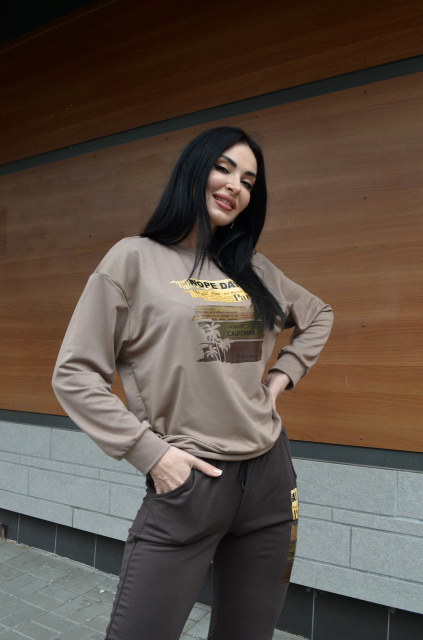 UA MarketВінницяGhjhgТовари та послугиЖіночий одяг батал (розмір 50+) оптомСпортивні костюми жіночі батал оптомТрикотажний костюм з принтом «Nopeday» оптом | Батал Капучино +шоколадний, 50-52