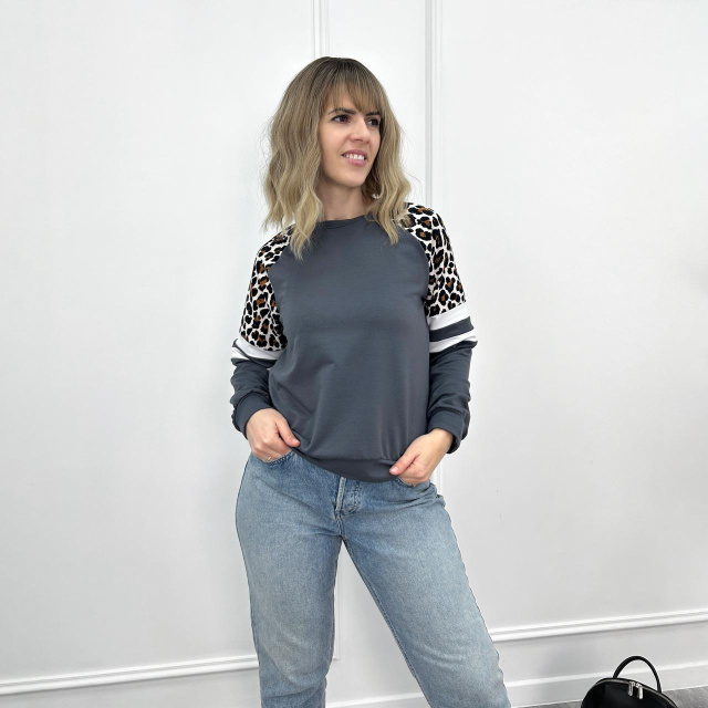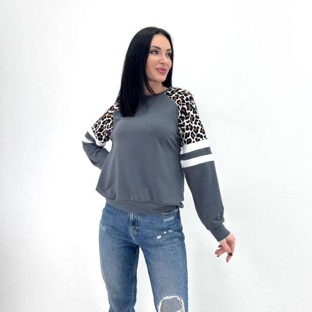 Жіночий світшот зі вставками «Artes» оптом | Батал Графіт, 50-52