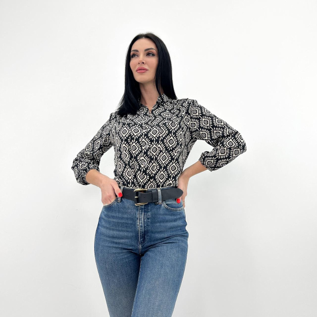 Жіноча блузка з принтом «Marocco» оптом | Батал | Розпродаж моделі Чорний, 50-52