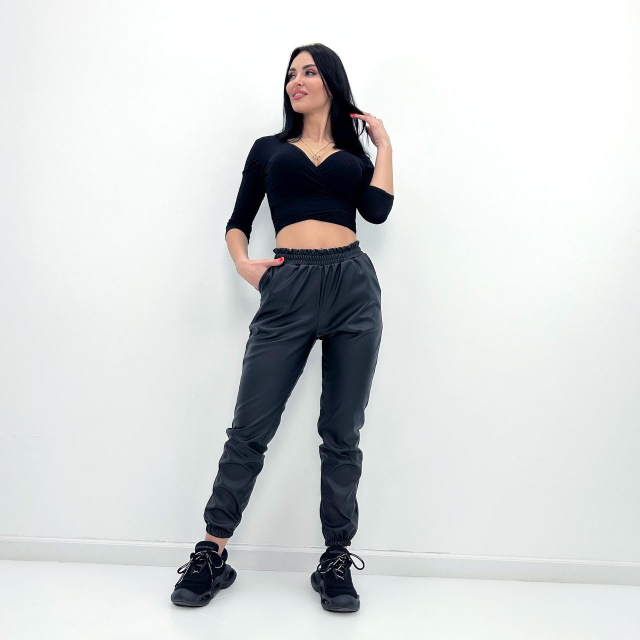 UA MarketВінницяGhjhgТовари та послугиЖіночий одяг батал (розмір 50+) оптомШтани та лосини жіночі батал оптомШтани-джогери з екошкіри «Bennett» оптом | Батал | Розпродаж моделі Чорний, 50-52