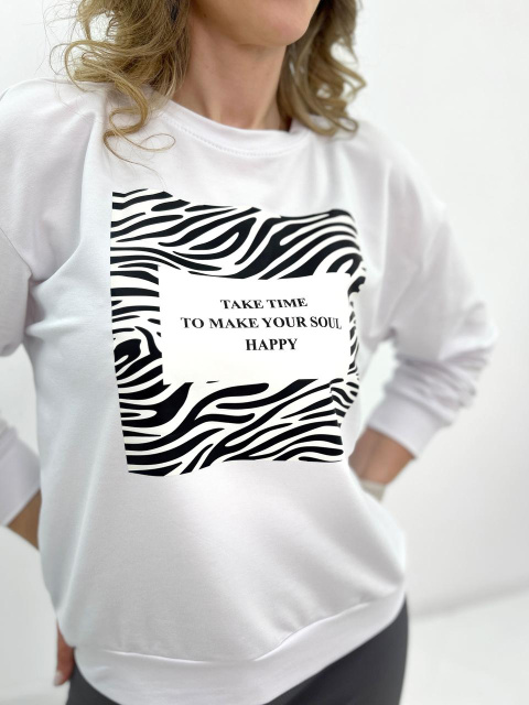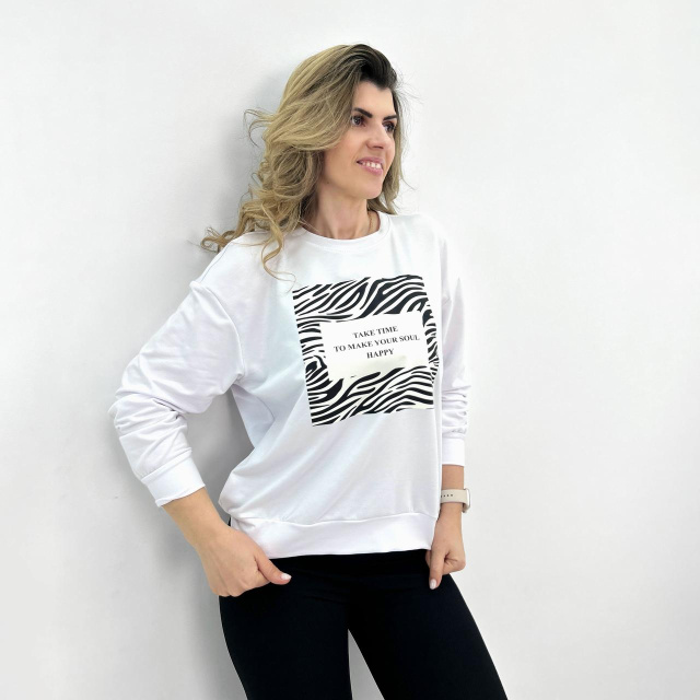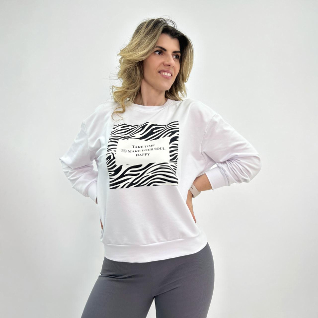 Жіночий світшот з анімалістичним принтом «Wild» оптом | Батал | Розпродаж моделі Білий, 54-56