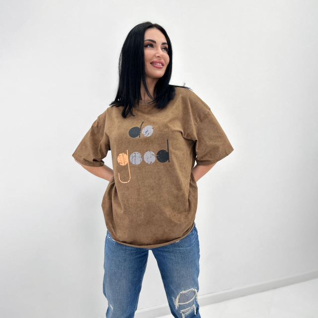 Дизайн з написом "Do good" надає виробу оригінальності та виділяє його серед інших базових елементів гардеробу. Нейтральна, але виразна графіка робить футболку стильним акцентом у будь-якому вбранні.
