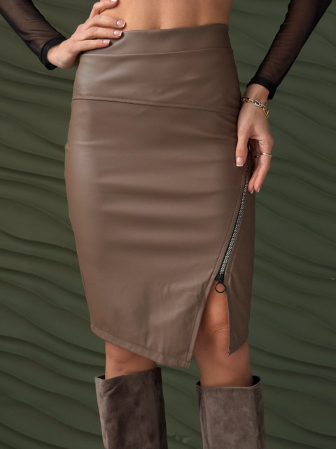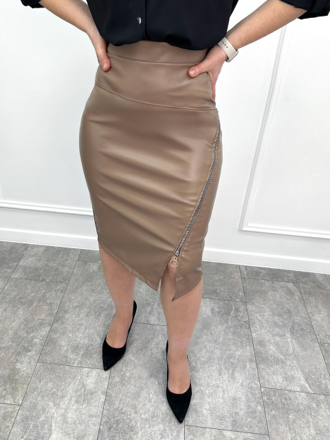 Спідниця з екошкіри до коліна «Dakota» оптом | Батал Мокко, 52