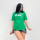 На особливу увагу заслуговує яскраво-зелений колір футболки, який не тільки виділяє модницю з натовпу, а й додає відчуття свіжості та новизни образу.