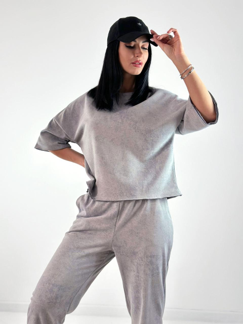 Жіночий костюм з турецької двунитки петля з ефектом tie dye «George»| Батал| Розпродаж моделі Сірий, 50-52