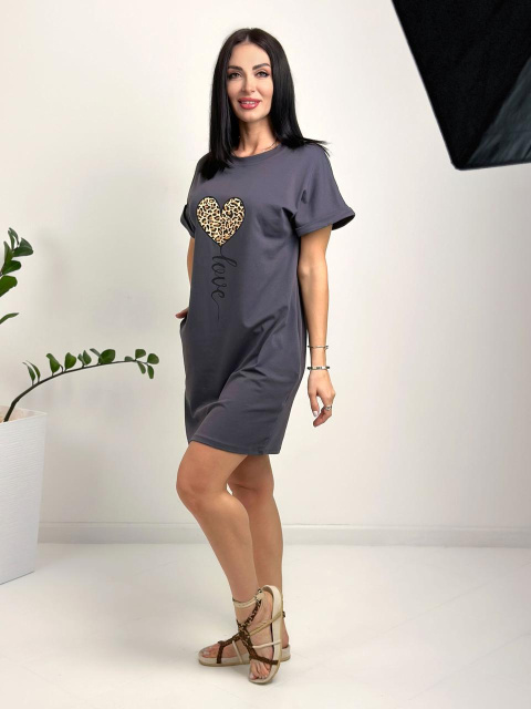 Жіноча сукня з малюнком «Passion» оптом | Батал Графіт, 50-52