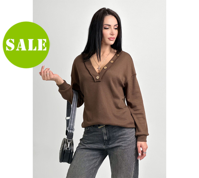 Дизайн пуловера – це вільний крій, спущені плечі та V-подібний виріз, що додає виробу стилю та комфорту.