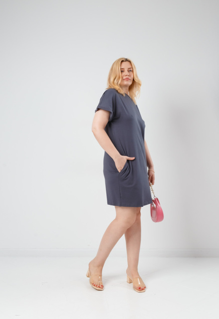 Літня сукня з кишенями «Nirvana» оптом | Батал Графіт, 50-52