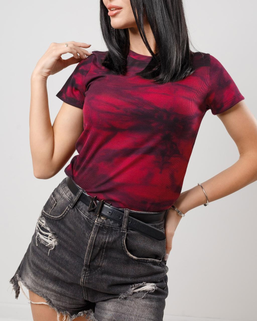 Жіноча футболка з ефектом тай-дай «Storm» оптом | Батал | Розпродаж моделі Малиновий, 50-52