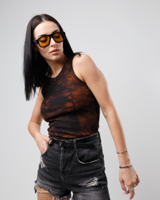 Майка "Ripple" пошита із трикотажу в рубчик із ефектом тай-дай. М'який матеріал гарантує зручність на весь день, роблячи цю майку чудовим вибором як для активного відпочинку, так і для повсякденного носіння.