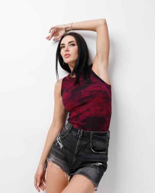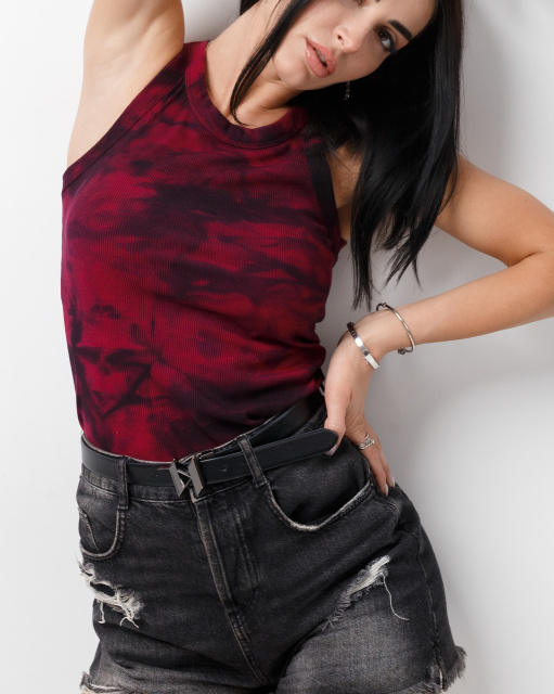 Облягаюча майка тай-дай «Ripple» оптом | Норма | Розпродаж моделі Малиновий, 46-48