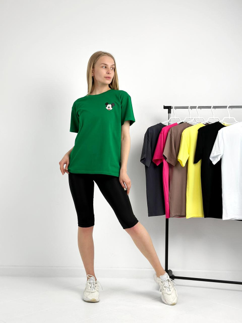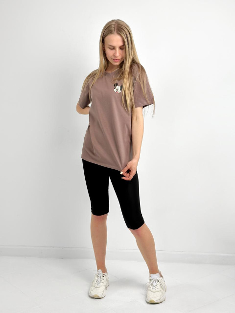 Футболка з короткими рукавами та округлим вирізом дозволяє тілу дихати в спекотні літні дні, а маленький принт додає родзинку в образ. Велосипедки облягають фігуру, моделюють силует і не обмежують рухів, що робить їх ідеальним вибором для прогулянок чи тренувань.