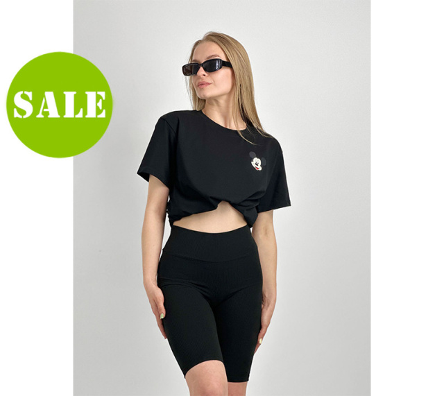 Бавовняна футболка простого крою ідеально підходить для спекотного літа, а велосипедки з високою талією не сковують рухів і моделюють фігуру. Цей стильний і функціональний комплект обов'язково сподобається вашим покупцям. Продаж товарів комплектом не тільки полегшує вибір для покупця, але й збільшує ваш заробіток.
