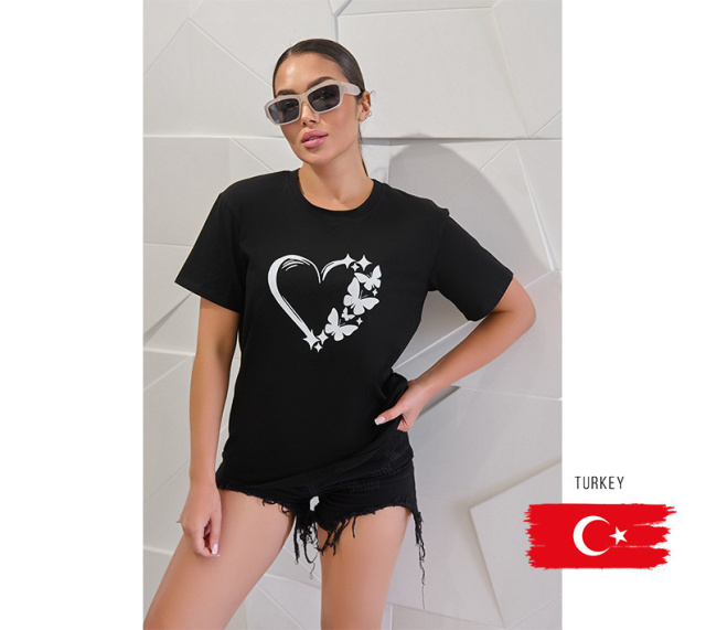 Головний акцент - яскравий і стильний принт у вигляді серця з метеликами. Він додає динамічного акценту до образу, роблячи футболку унікальною. Spark доступна в семи модних кольорах, що дозволяє клієнтам вибрати свій улюблений варіант.