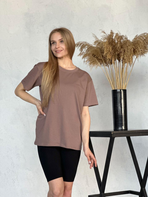 Комплект із футболки та велосипедок – універсальне рішення для стильного та комфортного образу. Футболка виконана з м'якої тканини, що дихає, яка забезпечує комфорт протягом усього дня. Велосипедки в рубчик ідеально доповнюють комплект, підкреслюючи силует та забезпечуючи свободу рухів.