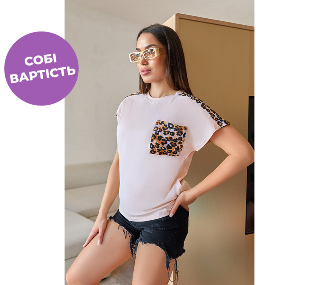 Жіноча футболка з леопардовими вставками «Esme» оптом від виробника | Норма| Розпродаж моделі