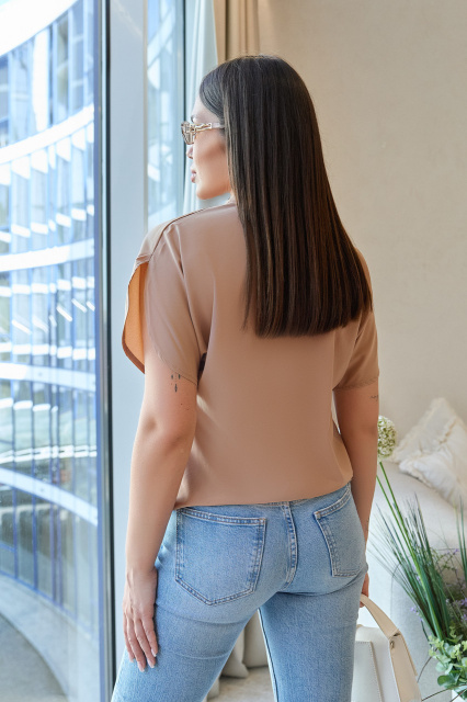 Літня блуза з розрізним рукавом «Moon»| Батал | Розпродаж моделі 50-52, Капучіно