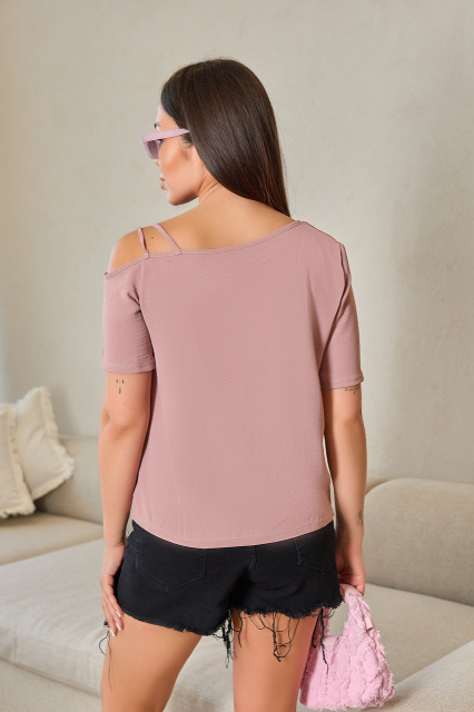 Літня блузка з відкритим плечем «Elis»| Норма і батал | Розпродаж моделі Фрезовий, 50-52