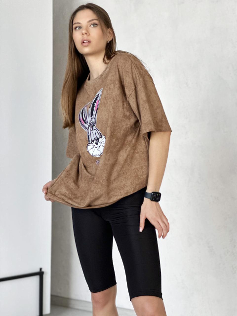 Футболка з вільним кроєм дозволяє відчувати себе комфортно і легко, а велосипедки з еластичного матеріалу гарантують чудову підтримку та свободу рухів, що робить їх ідеальними для будь-яких активностей.
