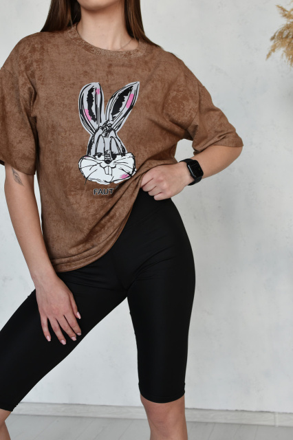 Цей комплект включає футболку тай-дай з принтом кролика Роджера, виготовлену з високоякісного турецького куліру, та велосипедки з мікродайвінгу.