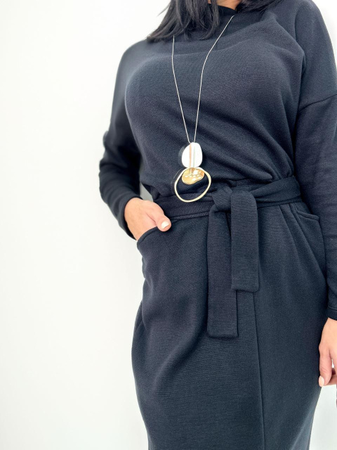 Довга ангорова сукня з поясом «Juliette» оптом | Норма і батал | Розпродаж моделі 46-48, Чорний
