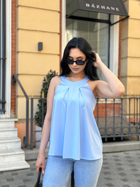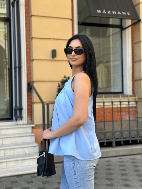 UA MarketВінницяGhjhgТовари та послугиЖіночий одяг батал (розмір 50+) оптомБлузки батал оптомЖіноча блузка без рукавів «Mila» оптом | Батал | Розпродаж моделі Блакитний, 50-52