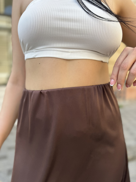 Жіноча шовкова спідниця «Silk» оптом | Батал | Розпродаж моделі Шоколадний, 50-52
