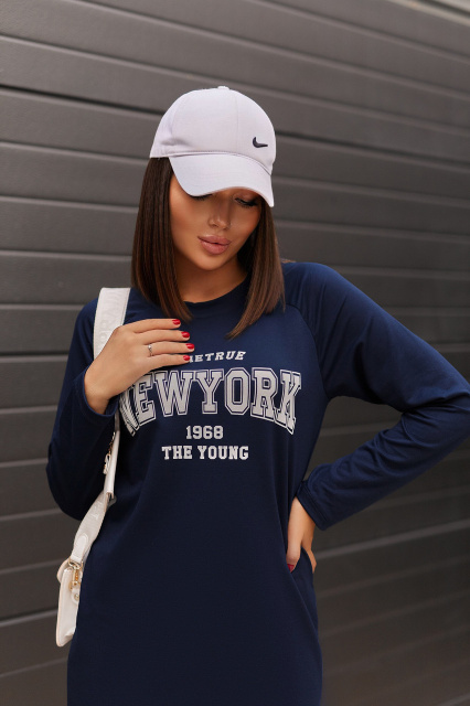 Спортивна трикотажна сукня з написом «Freedom» | Батал Темно-синій, 50-52
