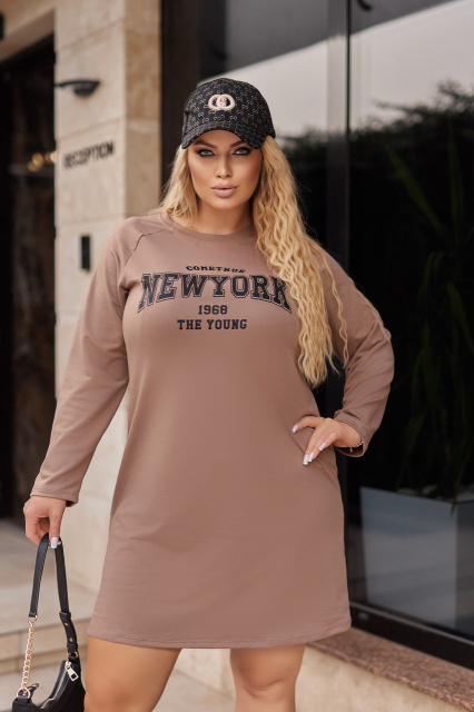 Спортивна трикотажна сукня з написом «Freedom» | Батал Капучіно, 50-52